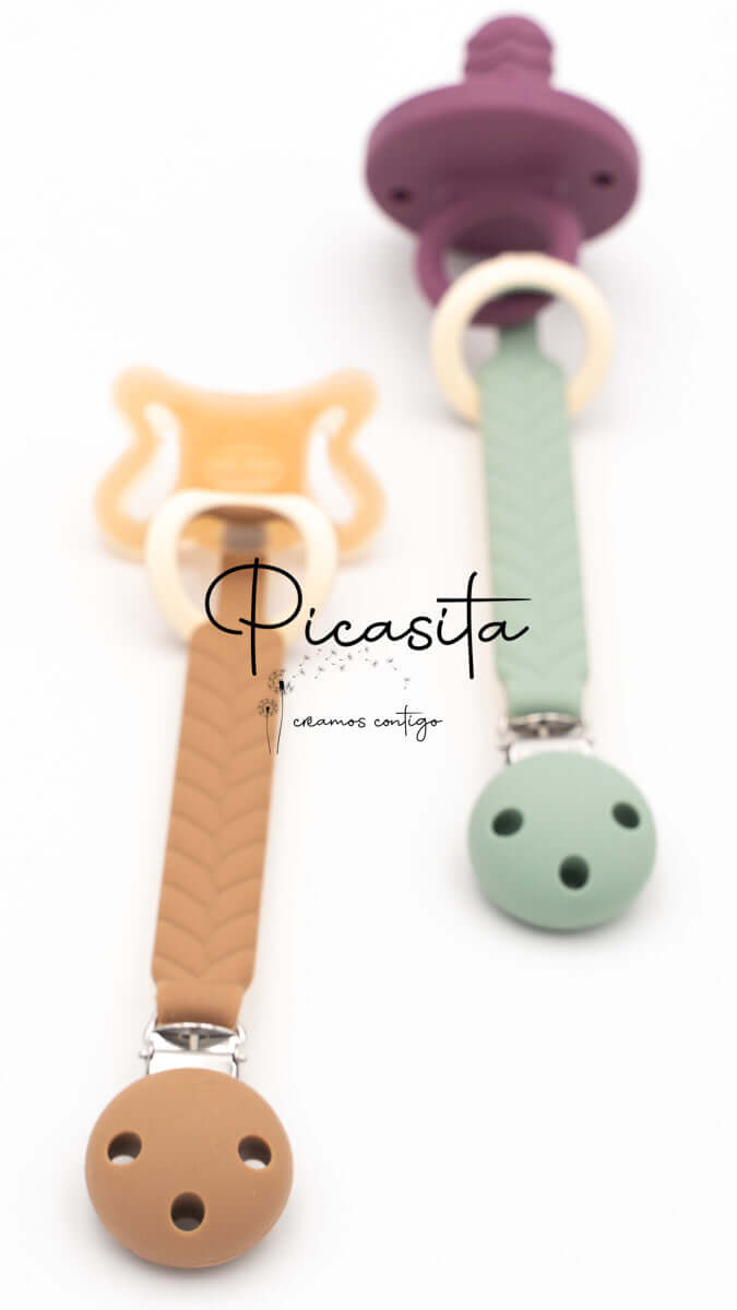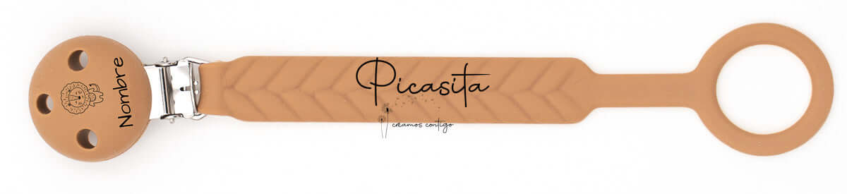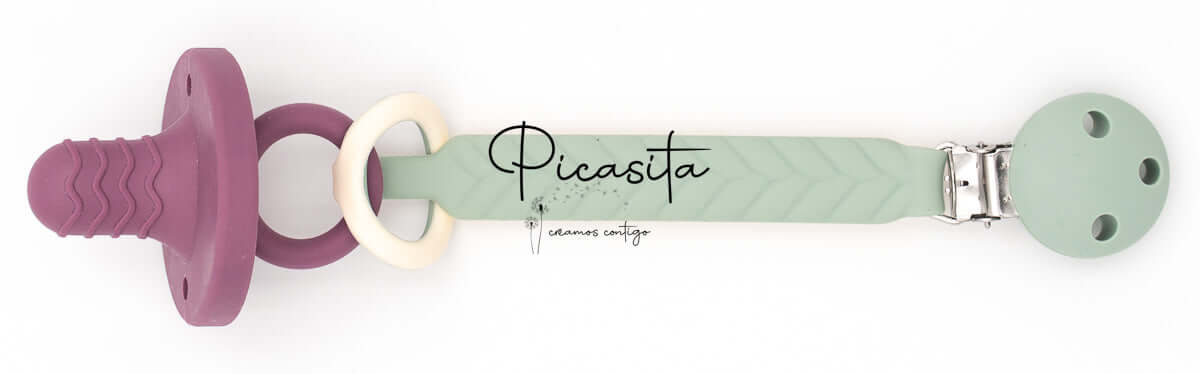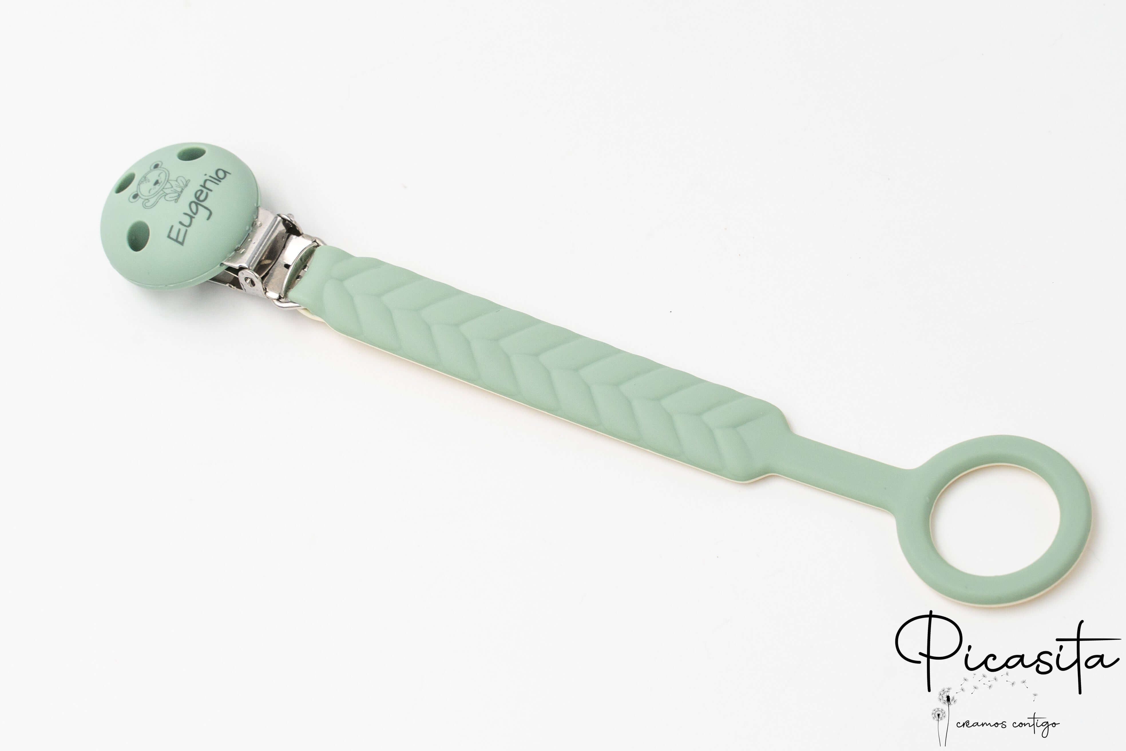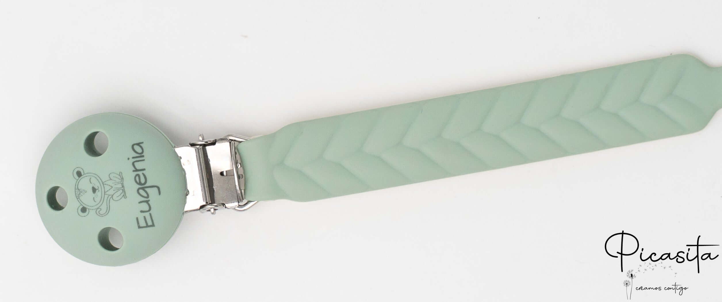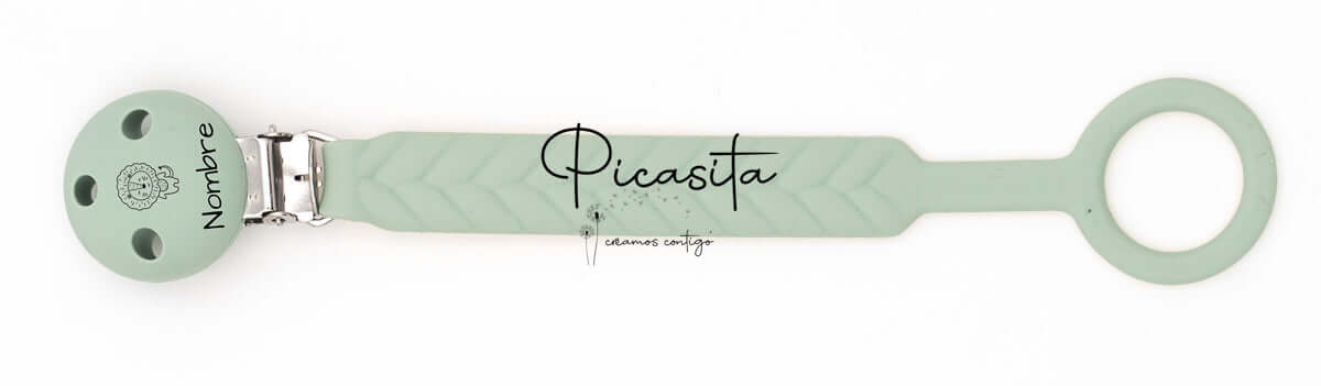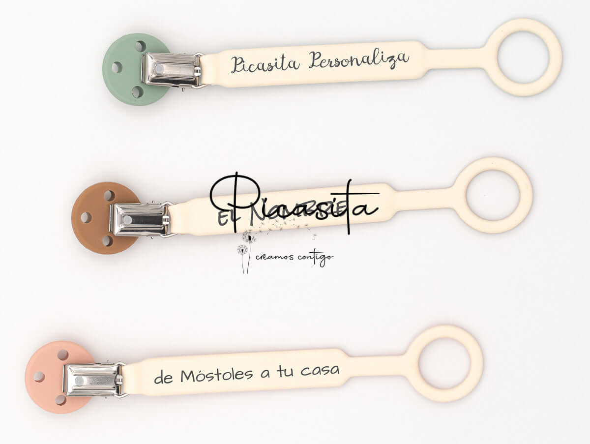 Chez Picasita, nous savons que chaque détail compte, c’est pourquoi nous présentons cet attache-sucette personnalisable avec une caractéristique unique sur le marché : sa face arrière est de couleur blanche unie. Cet espace est spécialement conçu pour que nous puissions réaliser une gravure au laser de haute précision, permettant d’inclure le nom de votre bébé ou un texte spécial avec une finition monochrome élégante et permanente qui ne s’efface ni par frottement ni par lavage.