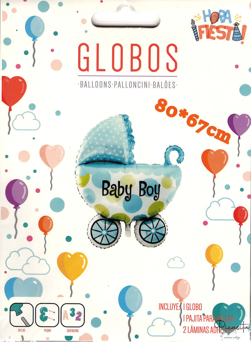 Pour la Fête Baby Shower Garçon : Le modèle en tons bleus, avec des pois et le texte “Baby Boy”, est le complément idéal pour célébrer l'arrivée d'un petit garçon. Ce ballon babyshower poussette apportera une touche de douceur et de tradition à votre fête baby shower garçon.