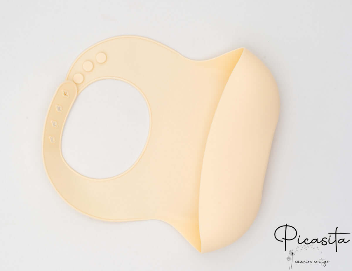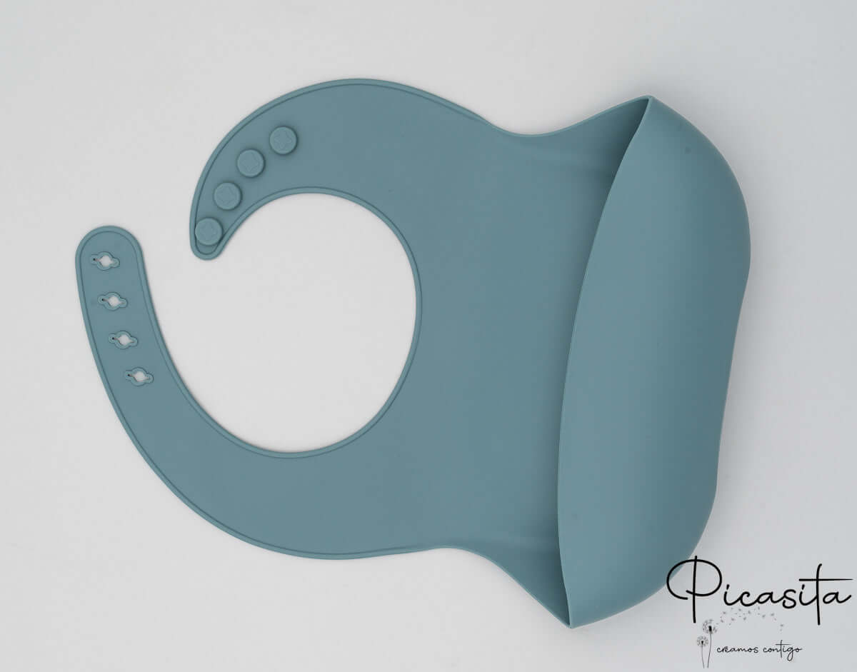 C'est un bavoir pour bébé fabriqué en silicone de haute pureté, conçu spécifiquement pour être en contact avec les aliments. C'est un matériau inerte, sûr, exempt de toxines comme le BPA et extrêmement durable.