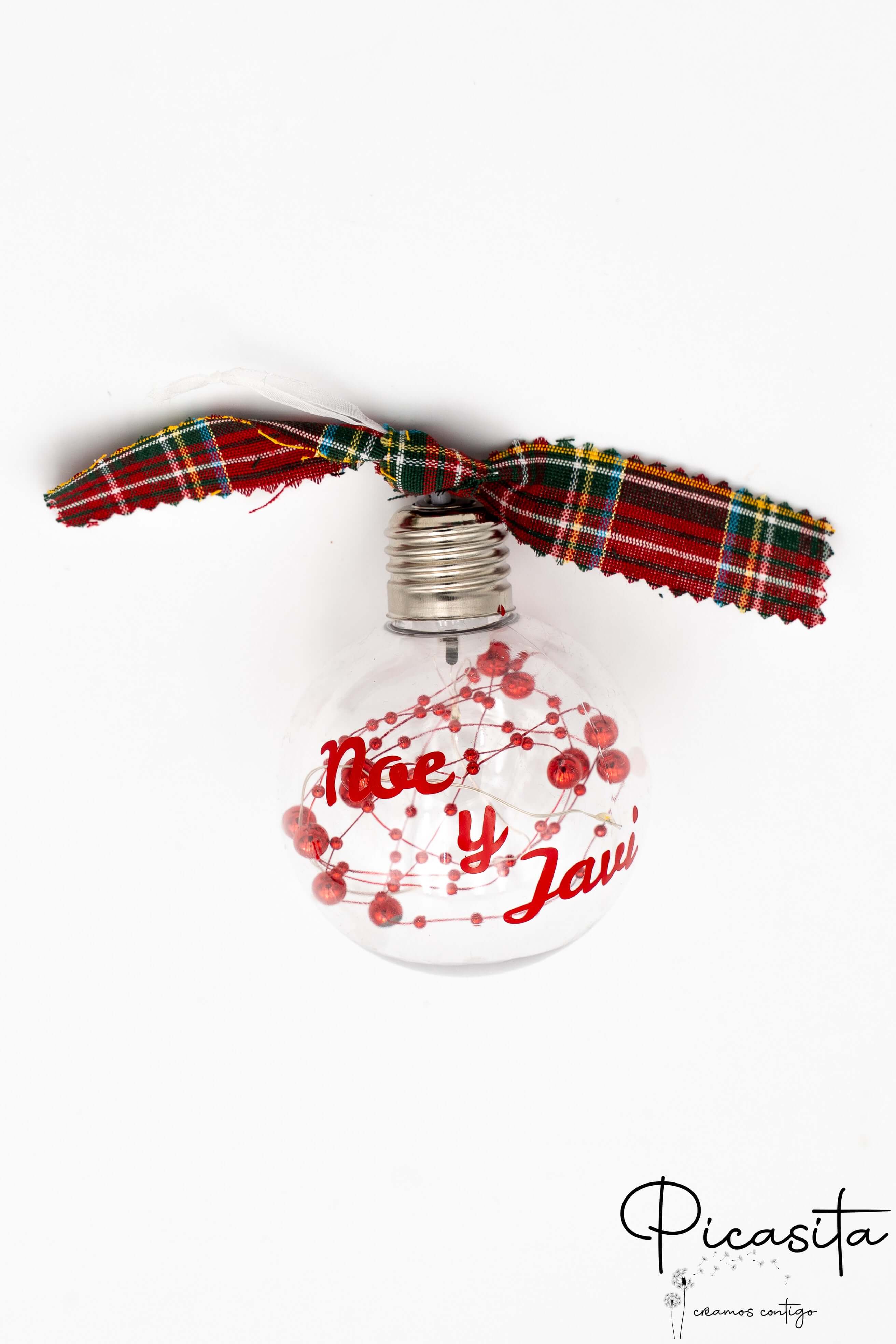 Noël est le moment parfait pour remplir chaque recoin de votre maison de magie. Chez Picasita, nous voulons que votre décoration soit unique, c’est pourquoi nous vous présentons notre boule de Noël personnalisée, un détail qui combine la nostalgie des ampoules classiques avec la technologie moderne. Cette boule de Noël LED n’éclaire pas seulement, elle raconte une histoire : celle de votre famille ou de vos proches.