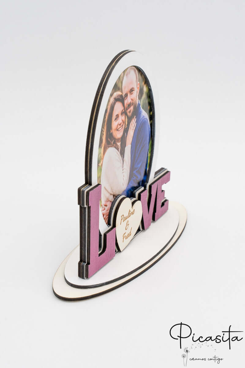 Notre catalogue dans Notre Boutique regorge d’options pensées pour célébrer l’amour sous toutes ses formes. Ces cadres photo Saint-Valentin disposent d’une base plate de bureau solide qui garantit une stabilité parfaite, sans besoin de supports étranges. Les différentes couches de bois, certaines enrichies de détails romantiques aux couleurs vives comme des rouges intenses ou des tons pourpres, encadrent votre image en l’enlaçant avec des mots comme "LOVE" ou de tendres balançoires en silhouette.