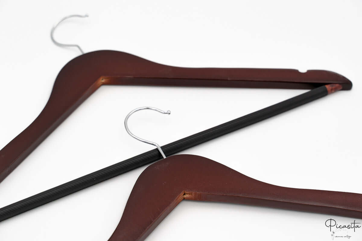 Ce cintre avec nom n'est pas seulement esthétique, mais aussi fonctionnel. Avec des dimensions de 23,0 cm de hauteur et 44,5 cm de largeur, il offre le support idéal pour chemises, blouses et t-shirts légers. Sa structure est conçue pour que le tombé du tissu soit naturel, évitant que l'épaule ne soit marquée lorsque le vêtement reste suspendu longtemps. Si vous souhaitez agrandir votre collection, n'hésitez pas à explorer notre gamme complète de Cintres Personnalisés pour unifier tout votre placard avec la même qualité.