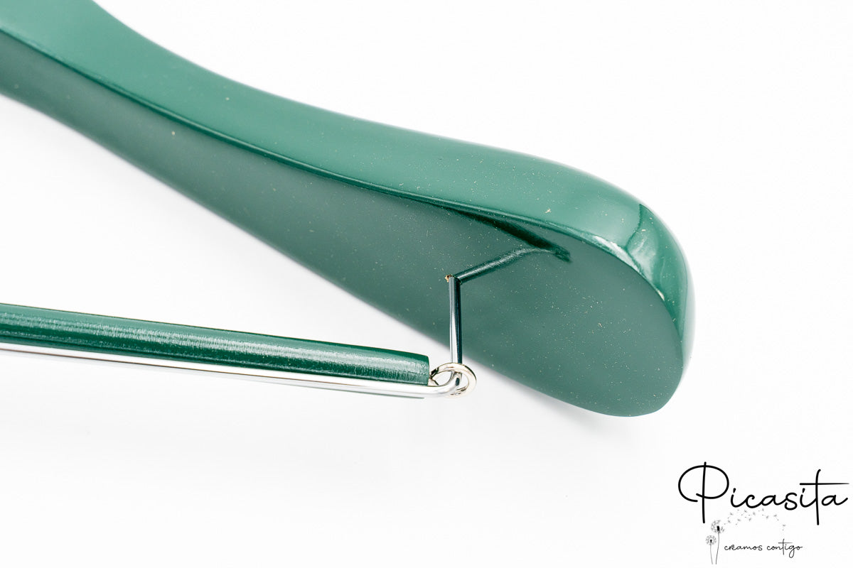 Avec une largeur d’épaules comprise entre 40 et 44,5 cm, ces cintres offrent le soutien structurel nécessaire pour tout type de vêtements, des manteaux lourds aux robes délicates. La finition brillante dans des teintes vives comme le bleu, le vert, l’or ou le noir, combinée à l’option de choisir le crochet en argent, or ou rose, garantit que chaque cintre coloré pour boutique capte la lumière et l’attention de vos clients instantanément.