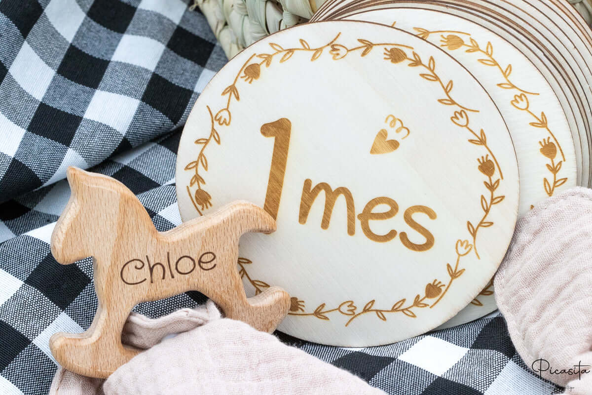 12 disques mois par mois : Fabriqués en bois naturel gravé pour capturer la croissance du bébé mois après mois, de 1 à 12.