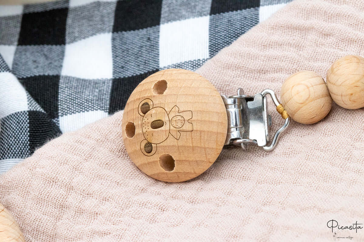 La personnalisation est ce qui transforme un objet ordinaire en un souvenir pour toute la vie. Lorsque vous décidez d’offrir un cadeau à un bébé, vous voulez qu’il soit unique. Sur picasita.es, nous utilisons une technologie de gravure laser de haute précision. Cette méthode n’utilise ni encres chimiques ni fils, obtenant une finition monochrome en gris foncé qui est permanente et totalement sûre. Nous gravons le nom du petit accompagné d’un adorable animal sur les accessoires en bois et silicone. De plus, cette corbeille pour bébé est une excellente option pour les entreprises ; nous pouvons intégrer discrètement le logo corporatif pour des cadeaux institutionnels de haut niveau.