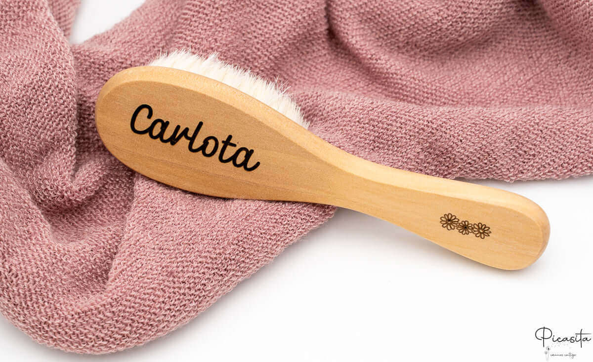 Brosse en laine naturelle : Avec des poils d’une douceur extrême, spécialement conçue pour le cuir chevelu délicat du nouveau-né.