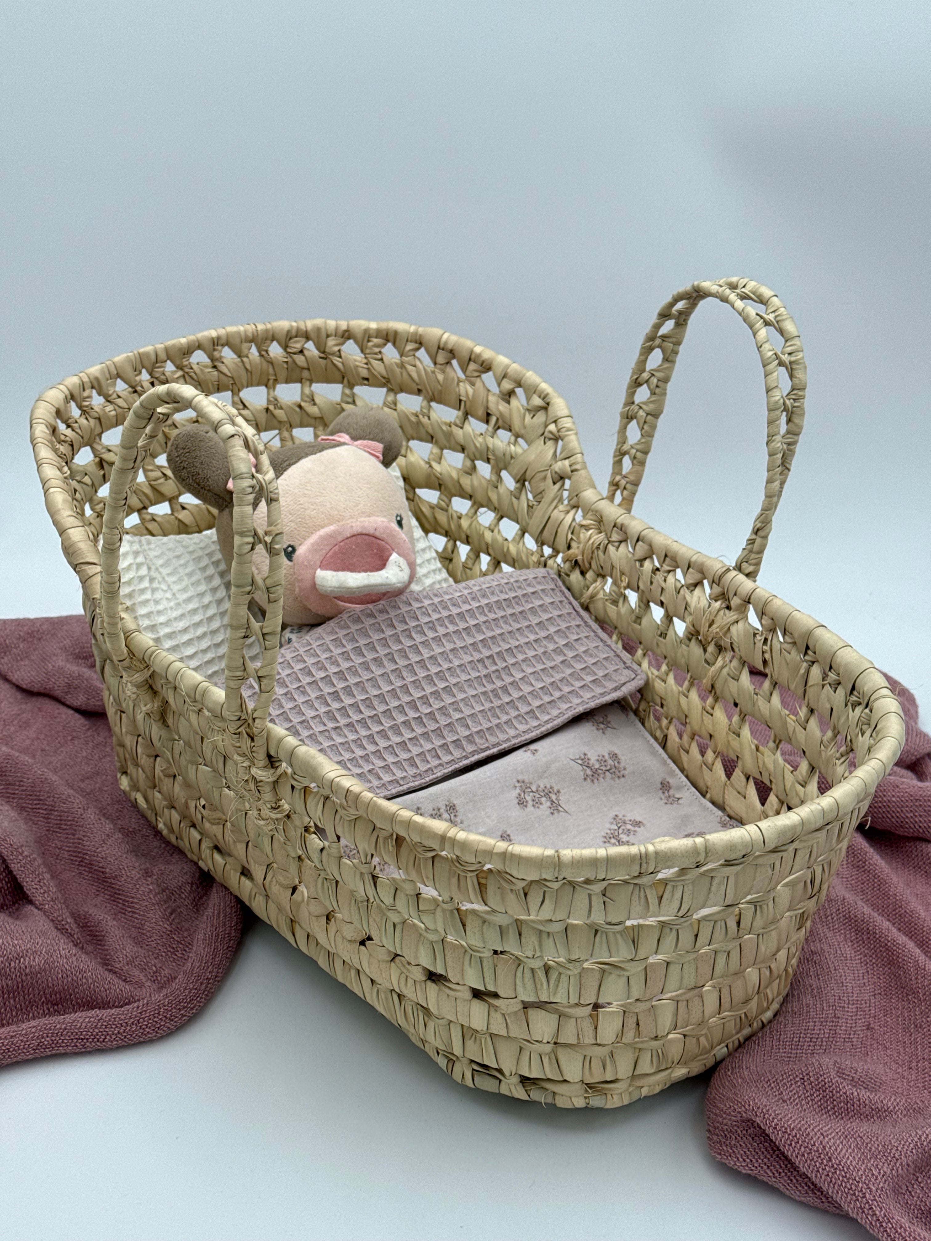 Chez Picasita, nous croyons en la valeur de l’authenticité. C’est pourquoi chaque berceau fait main est une pièce spéciale. Nous proposons deux variantes exclusives : Bruyère et Lavande. La principale différence réside dans la finition de sa confection ; tandis que l’un présente des coutures apparentes avec un air plus rustique, l’autre offre une finition soignée, tout en conservant l’essence d’un produit 100 % artisanal. Ce couffin pour poupée est tressé avec des fibres naturelles, apportant une texture organique et résistante qui connecte l’enfant à des matériaux de qualité.