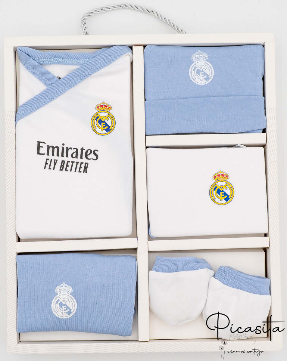 La passion pour le club blanc se transmet dès le premier jour. Il n’y a pas de meilleure façon d’accueillir le nouveau membre de la famille qu’avec cet exclusif ensemble nouveau-né real madrid. Ce set officiel de 5 pièces a été conçu en pensant au confort absolu du bébé et à la fierté des parents madridistas. Si vous cherchez les meilleurs vêtements bébé real madrid à offrir ou pour préparer la première tenue, ce kit allie élégance, qualité et le sentiment de la plus grande équipe du monde.