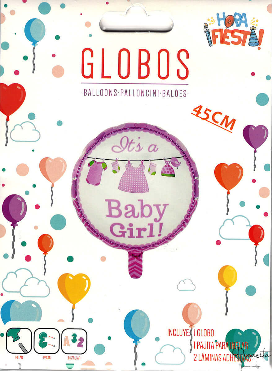 Ballon Baby Girl : Si la célébration est pour une fille, notre ballon baby girl avec des détails dans une jolie couleur rose est l'option idéale. Son design doux et délicat apportera une touche de charme à la fête.