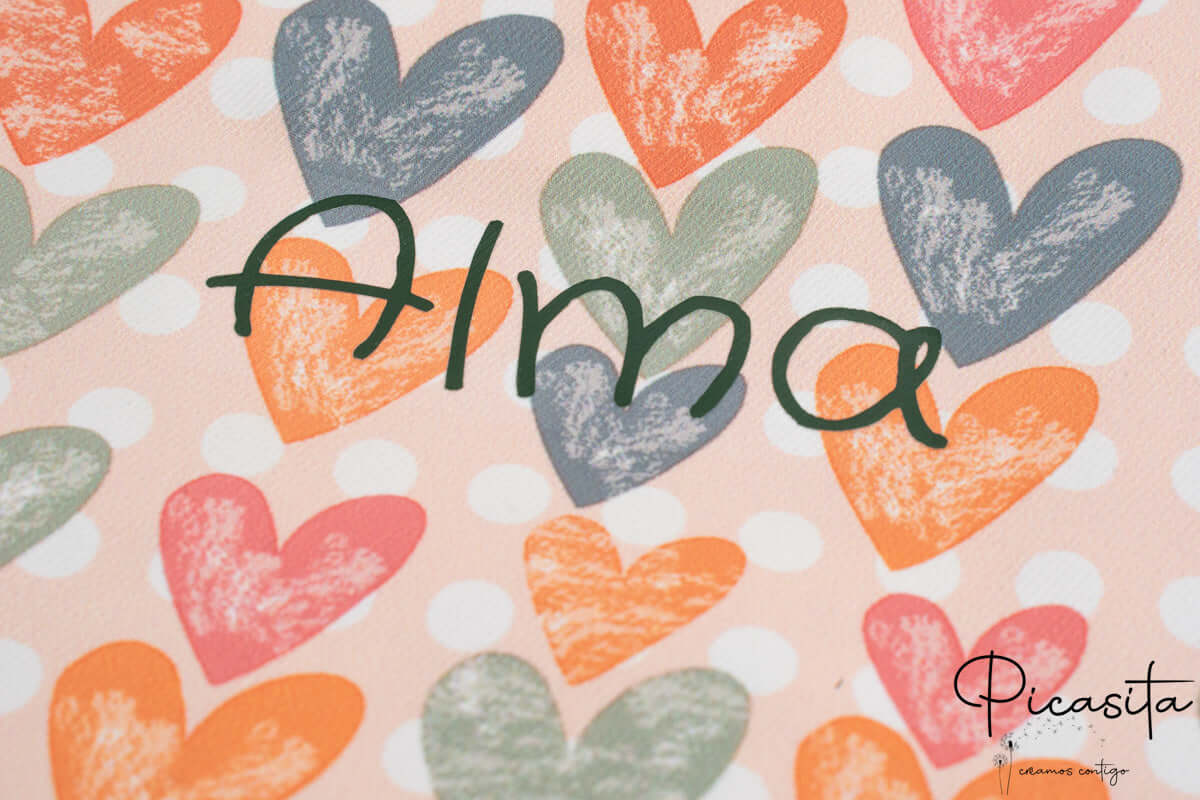 Nous recommandons de la nettoyer délicatement avec un chiffon humide et du savon neutre. Cela préservera les couleurs vives de ses motifs de cœurs ou de fleurs et prendra soin de la personnalisation en vinyle thermocollant. Évitez la machine à laver et le sèche-linge pour prolonger sa durée de vie.