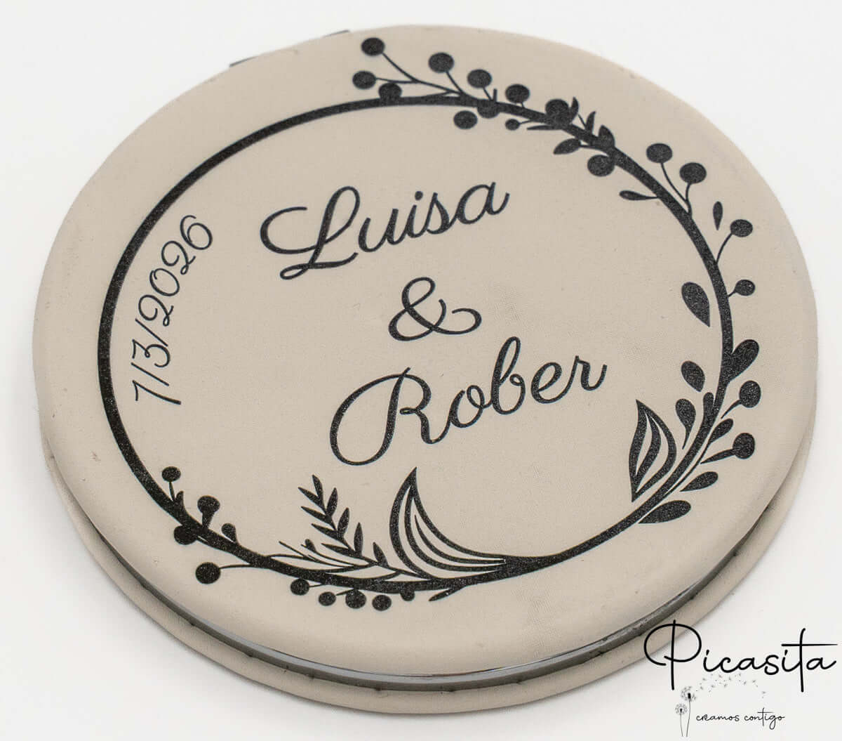 Si vous cherchez un cadeau alliant utilité et sophistication, nos miroirs de mariage sont l'option ultime. Ce miroir de poche n'est pas seulement un accessoire de beauté, mais un souvenir durable conçu pour résister au quotidien avec style.