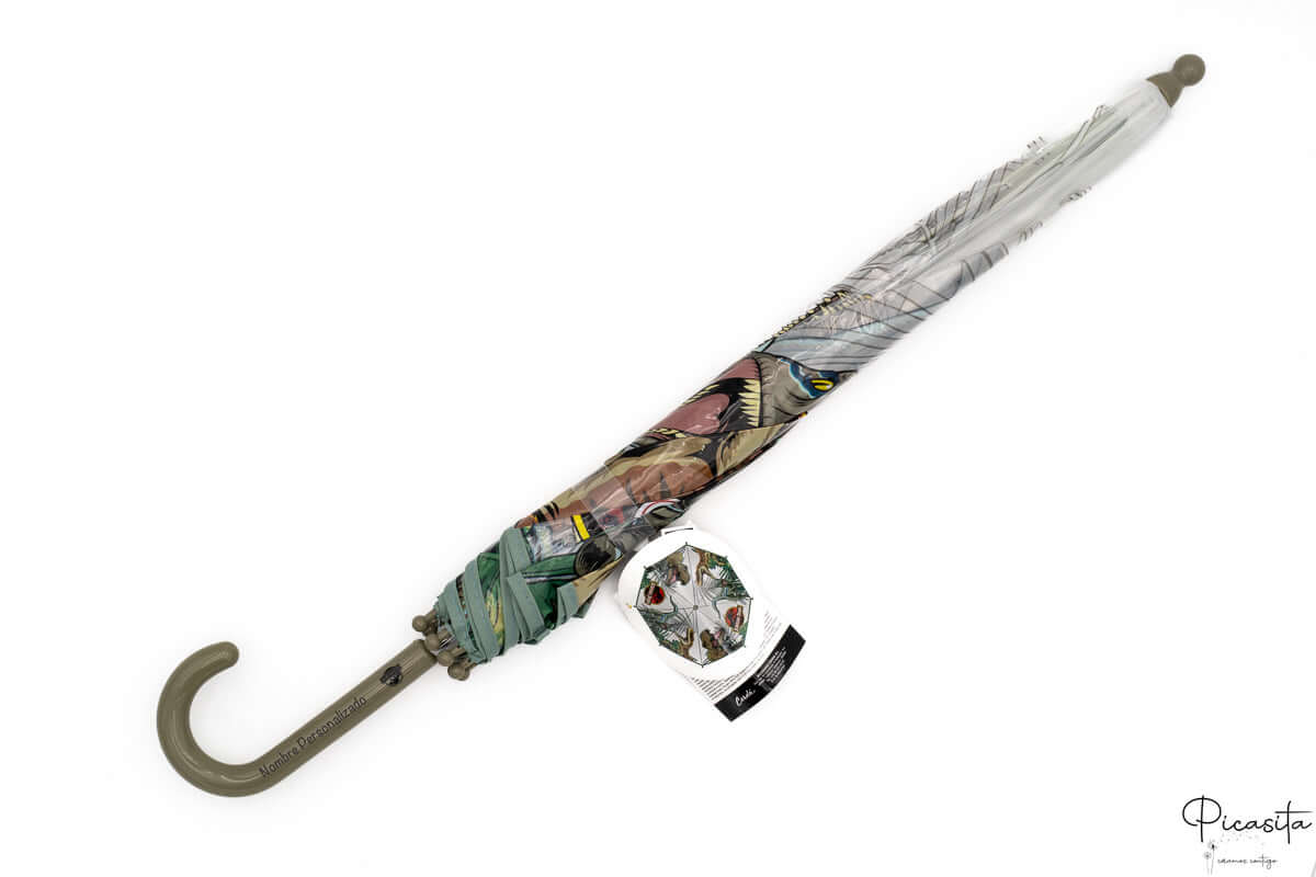 Ce qui rend vraiment ce produit spécial, c'est la possibilité de le transformer en une pièce unique et inimitable. En achetant votre parapluie enfant jurassic world, nous réalisons une gravure laser de haute précision avec le nom directement sur la poignée. La poignée, d'une élégante couleur vert militaire et d'une hauteur ergonomique de 10,5 cm, permet une prise ferme et confortable pour les petites mains.