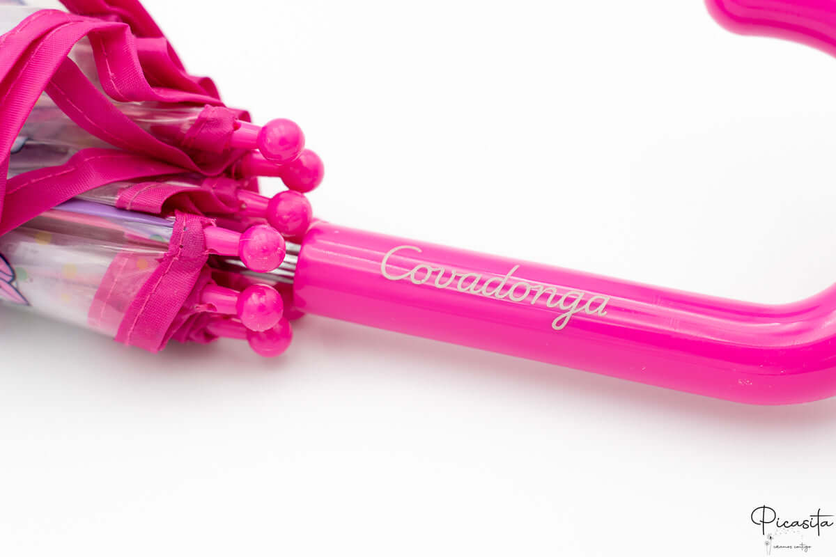 Quâest-ce qui rend ce cadeau inoubliable ? La possibilitĂ© de le rendre entiĂšrement Ă eux. Nous personnalisons cet accessoire en gravant le nom de la fille ou du garçon directement sur la poignĂ©e fuchsia, crĂ©ant un sentiment dâappartenance et dâexclusivitĂ© qui Ă©vitera les pertes Ă lâĂ©cole. Câest le dĂ©tail parfait pour les anniversaires, la rentrĂ©e scolaire ou simplement pour leur faire plaisir avec un cadeau utile et Ă©motionnel. DĂ©couvrez plus de cadeaux magiques dans notre boutique et faites de chaque jour de pluie une fĂȘte.