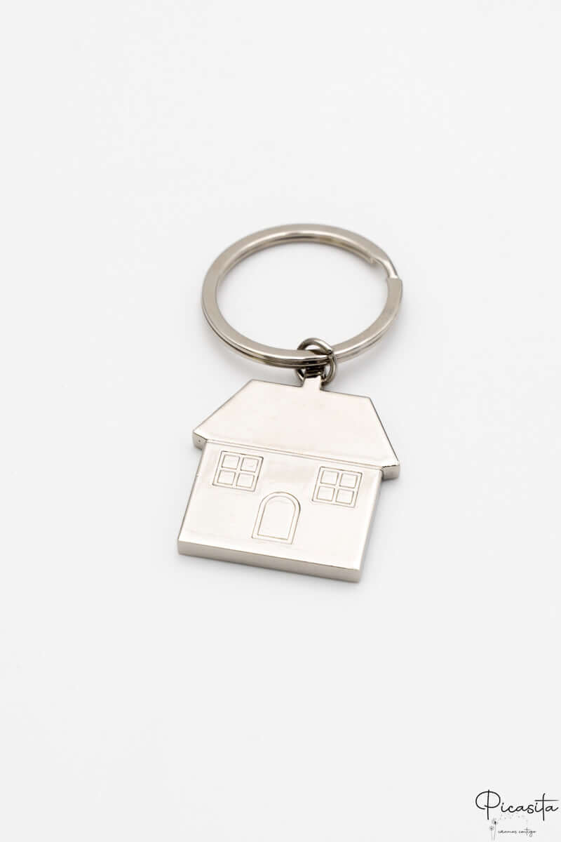 Notre porte-clĂ©s maison est fabriquĂ© en mĂ©tal poli brillant, spĂ©cifiquement en acier inoxydable, ce qui garantit une grande rĂ©sistance et durabilitĂ© pour un usage quotidien sans perdre son Ă©lĂ©gance. âš