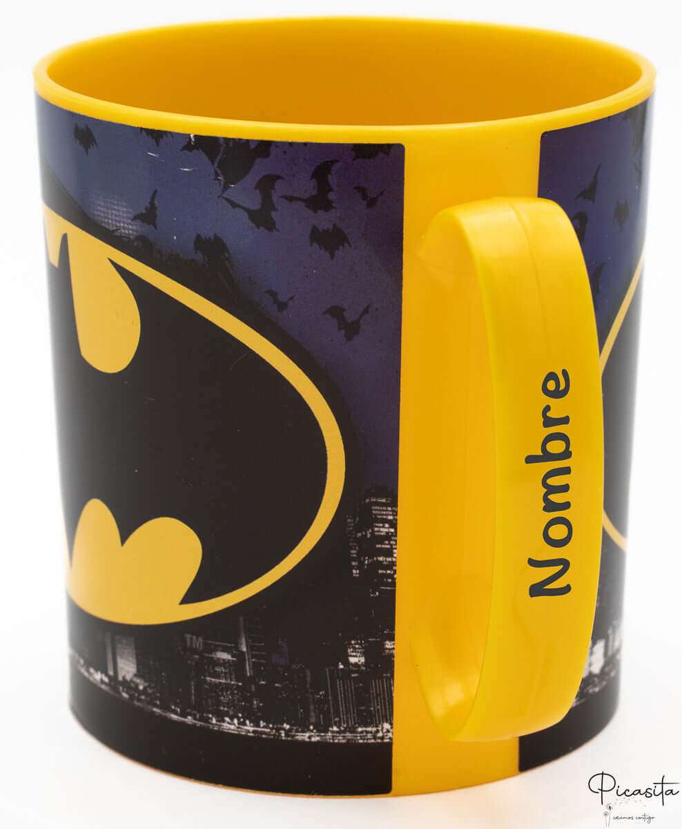 Nous savons parfaitement à quel point il est courant de trouver des tasses identiques dans une même classe ou cantine scolaire. Pour éviter les pertes ou échanges accidentels, nous pouvons personnaliser cette tasse Batman en gravant le nom de votre enfant de façon permanente sur la anse.