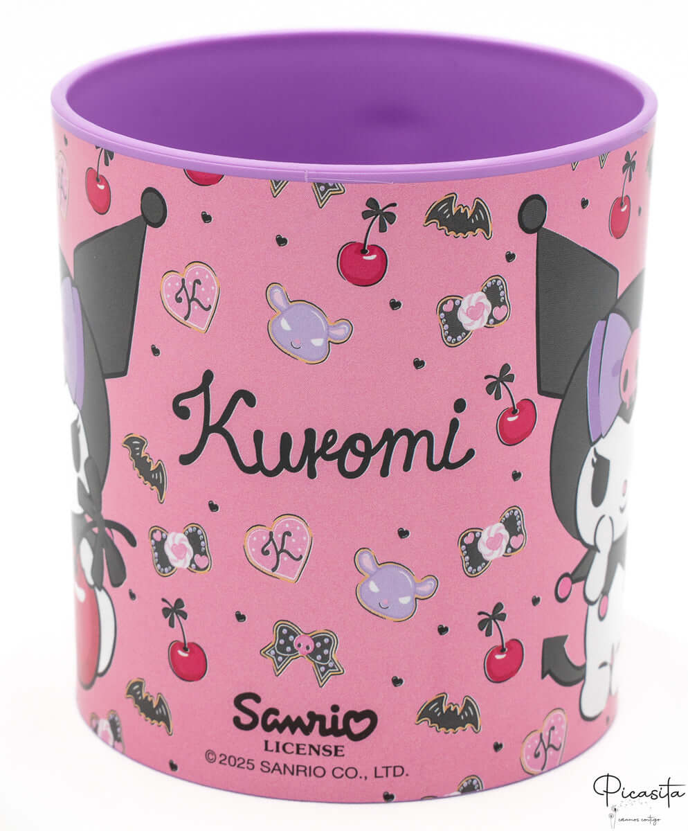 Cet article bénéficie de la licence officielle Sanrio, garantissant un design authentique et fidèle au personnage. Visuellement, la tasse Kuromi se distingue par son extérieur rose vif décoré de motifs de cerises, chauves-souris, cœurs et l'iconique Kuromi avec son nœud violet. L'intérieur violet crée un contraste fascinant qui ravit les fans. Avec des dimensions de 9,0 cm de haut et 7,0 cm de large, elle a la taille ergonomique idéale pour que les petites mains la tiennent en toute sécurité.