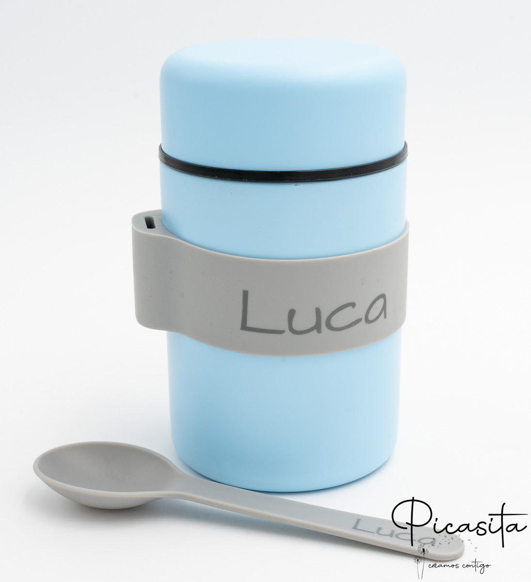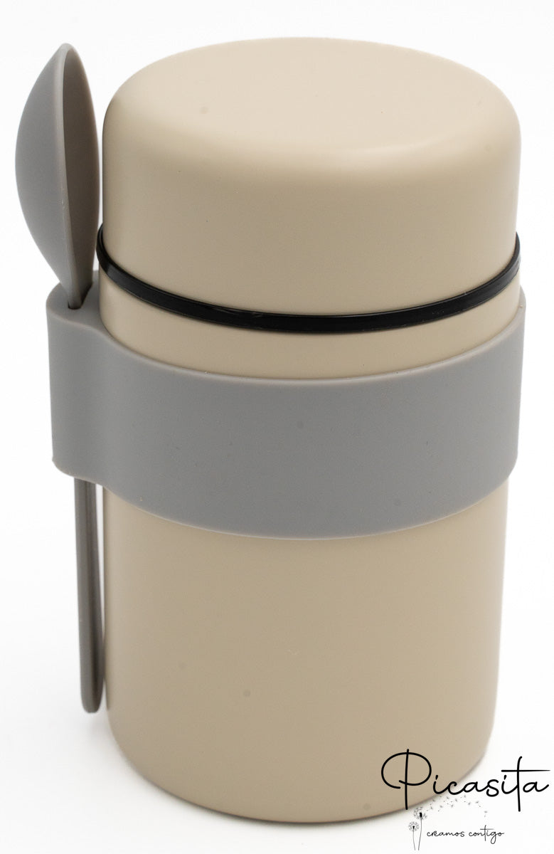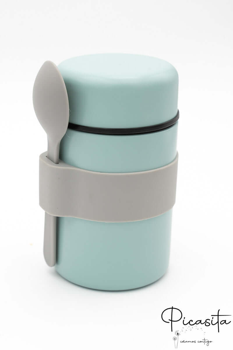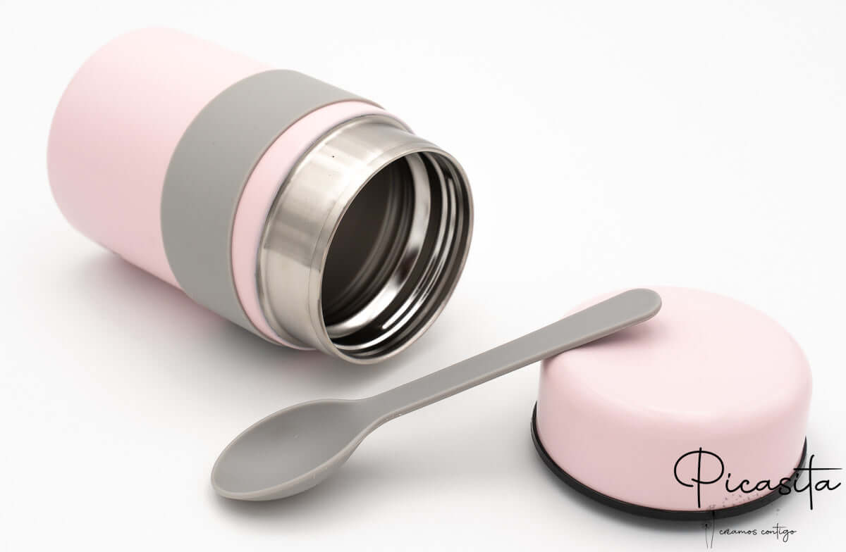 Nous avons conçu ce produit en pensant à la logistique familiale réelle. Il fonctionne parfaitement comme thermos pour purée, soupes ou aliments solides. Ce qui le rend unique, c’est sa bande en silicone extérieure, qui sert de ceinture pratique pour tenir la cuillère en silicone (incluse). Ce détail fait de notre modèle un thermos pour bébé extrêmement fonctionnel, garantissant que vous ayez toujours les couverts à portée de main et propres, évitant qu’ils ne se perdent au fond du sac.