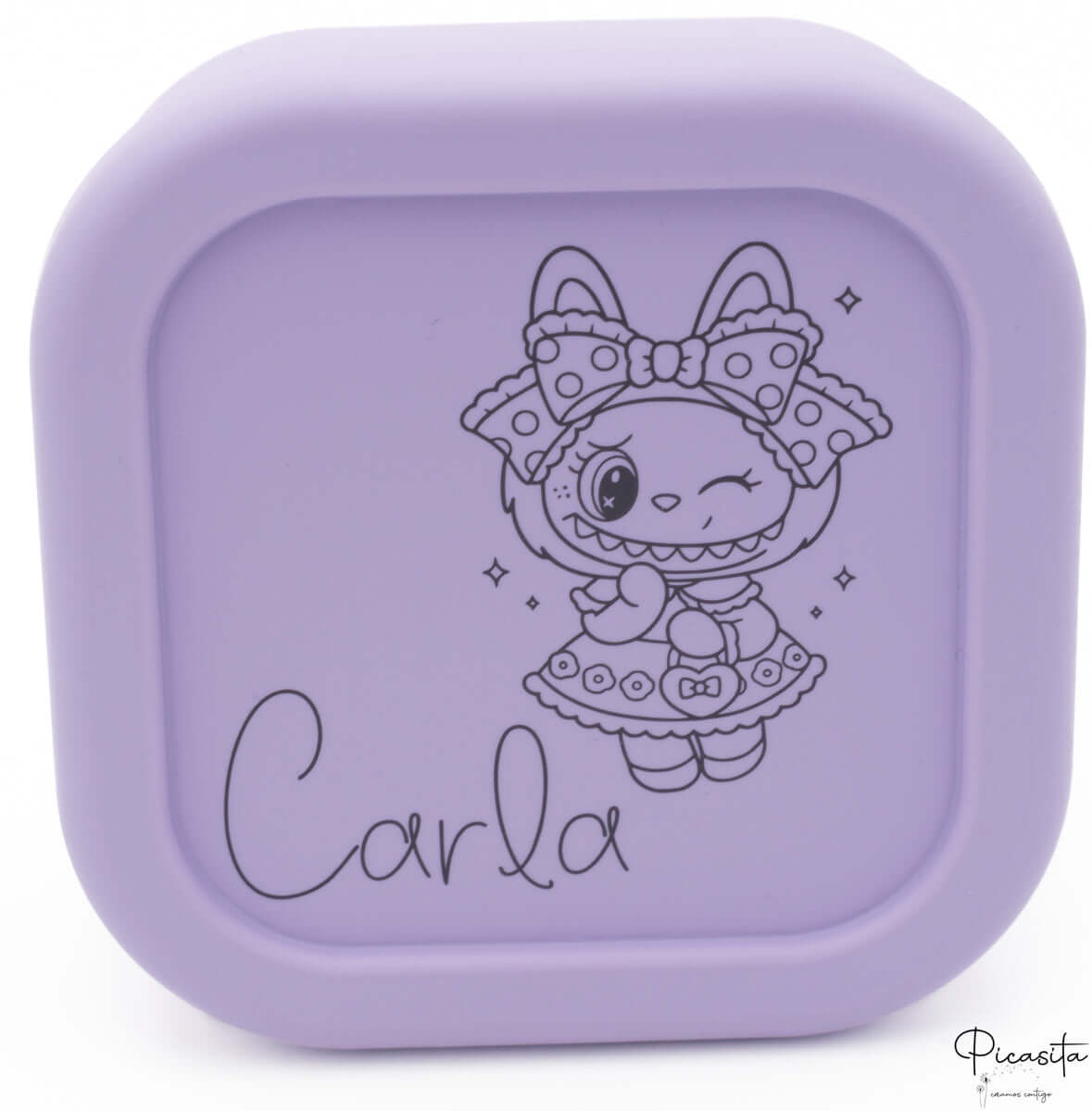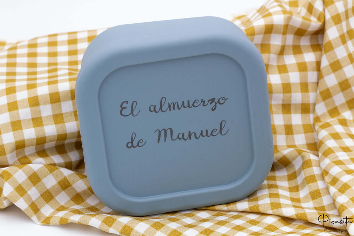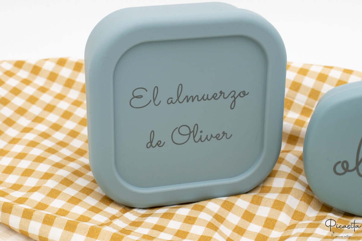 Ce qui fait vraiment la différence chez Picasita, c'est la capacité de créer un tupper personnalisé unique. Nous utilisons une technologie de laser de haute précision pour graver de façon permanente le nom, une phrase motivante comme "Bon appétit, Carlitos", ou même cet animal que votre petit adore. Étant une gravure au laser et non un autocollant ou une impression, le design ne s'efface pas, ne se décolle pas et ne s'altère pas avec les lavages fréquents.