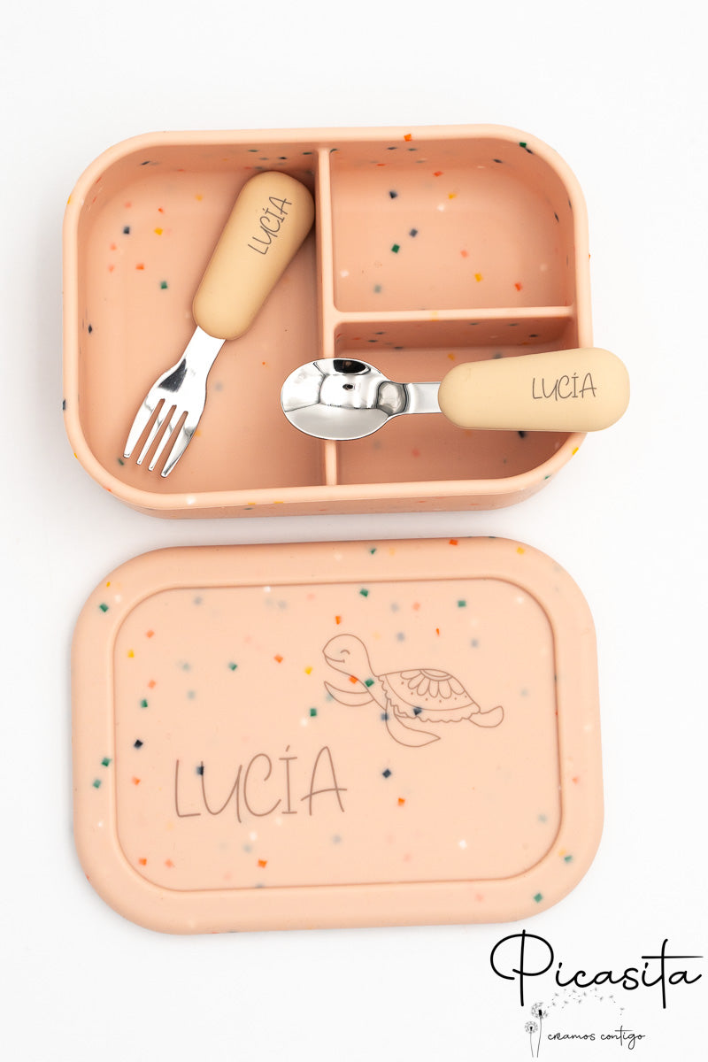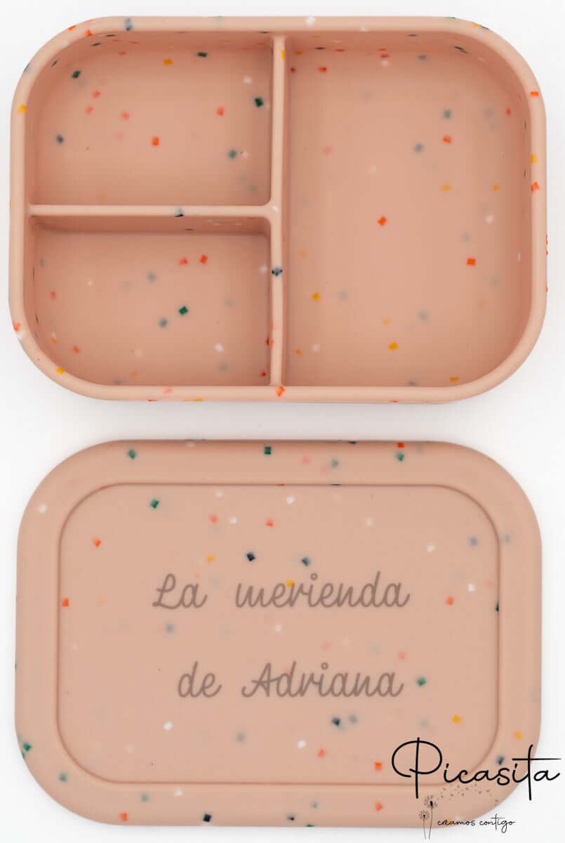 Disponible dans une magnifique gamme de couleurs pour tous les goûts : Beige avec Paillettes, Rose avec Paillettes, Vert avec Paillettes, Lilas, Rose Foncé, Bleu-Gris et Rose Clair. De plus, vous pouvez le combiner avec nos couverts en silicone (non inclus) pour compléter votre set de vaisselle personnalisée. Le meilleur de tout est que, gérant tout depuis Móstoles, nous expédions votre commande le lendemain de sa réception, déjà personnalisée et prête à l'emploi.
