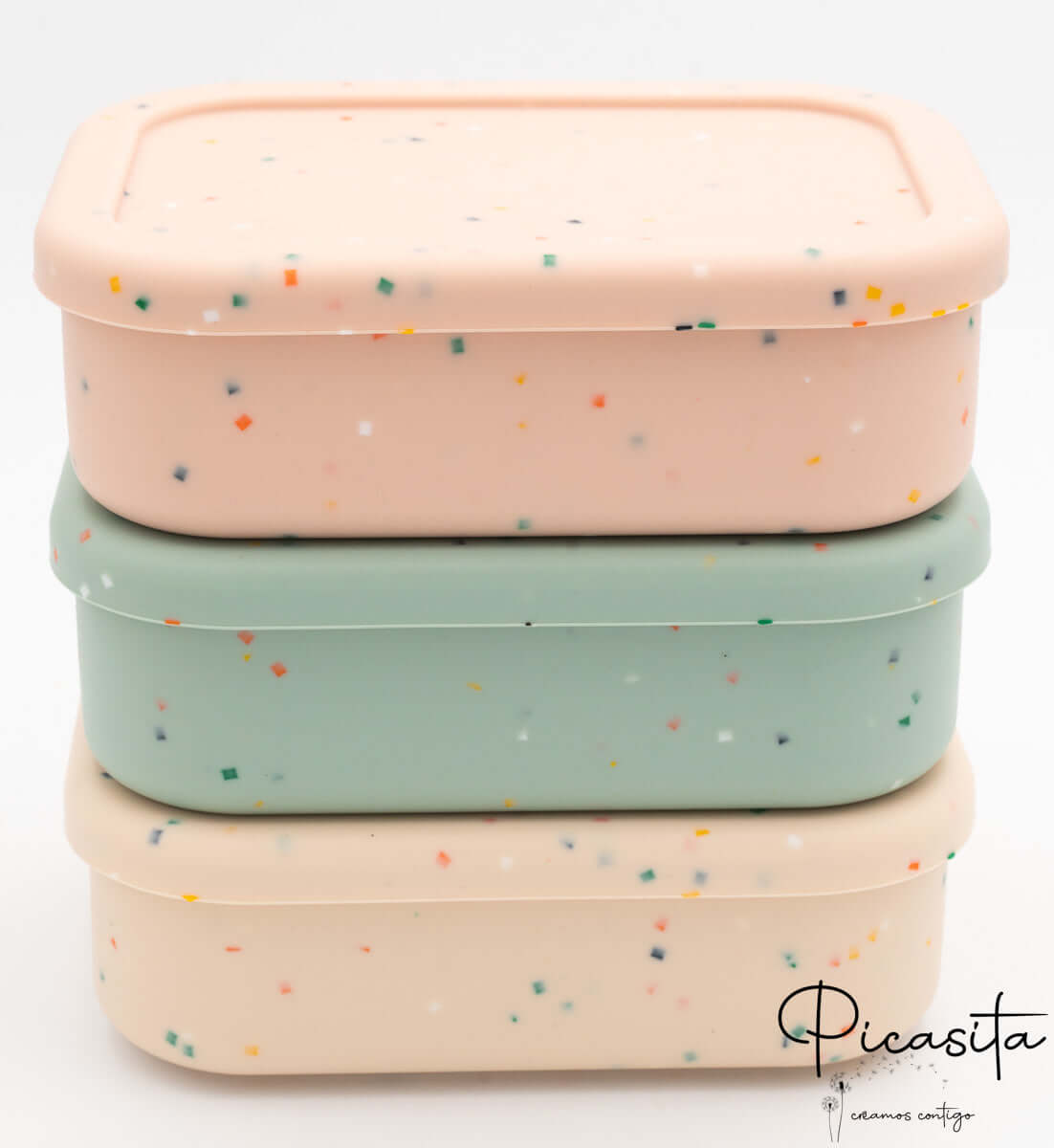 Organiser le menu quotidien est bien plus simple avec le tupperware en silicone grand de Picasita. Nous avons conçu un récipient qui n'est pas seulement pratique, mais aussi sûr et entièrement sur mesure. Avec des dimensions de 18,5 cm de long, 13,5 cm de large et 6,0 cm de haut, il offre le volume idéal pour des portions complètes pour adultes ou des goûters généreux pour les plus petits.