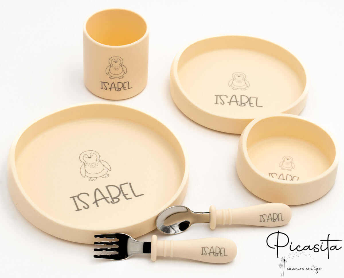 Voir votre bébé faire ses premiers pas vers l'alimentation autonome est une étape passionnante et pleine de découvertes. Chez picasita, nous savons que ce processus demande patience, amour et les bons outils. C’est pourquoi nous avons conçu une vaisselle enfant personnalisée qui facilite non seulement l’apprentissage, mais devient aussi un souvenir précieux de son enfance. Chaque pièce est pensée pour s’adapter à ses petites mains, offrant sécurité et confiance à chaque bouchée, tandis que son nom et son animal préféré l’accompagnent à table.